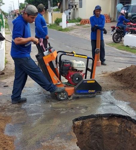 Estão sendo interligadas as novas tubulações em PVC, mais resistentes e duráveis, em substituição às redes antigas de cimento amianto