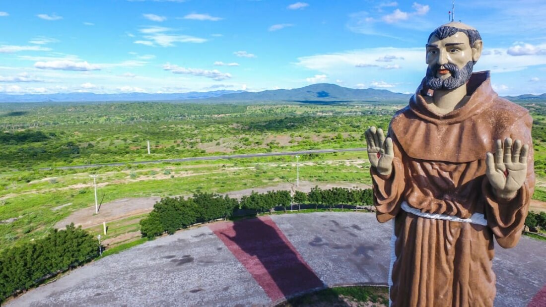 – CHEGADA E LARGADA: Estátua de São Francisco da Palmácia (Av. Salustiano Ribeiro Guimarães, 12 – Bica, Palmácia – CE).