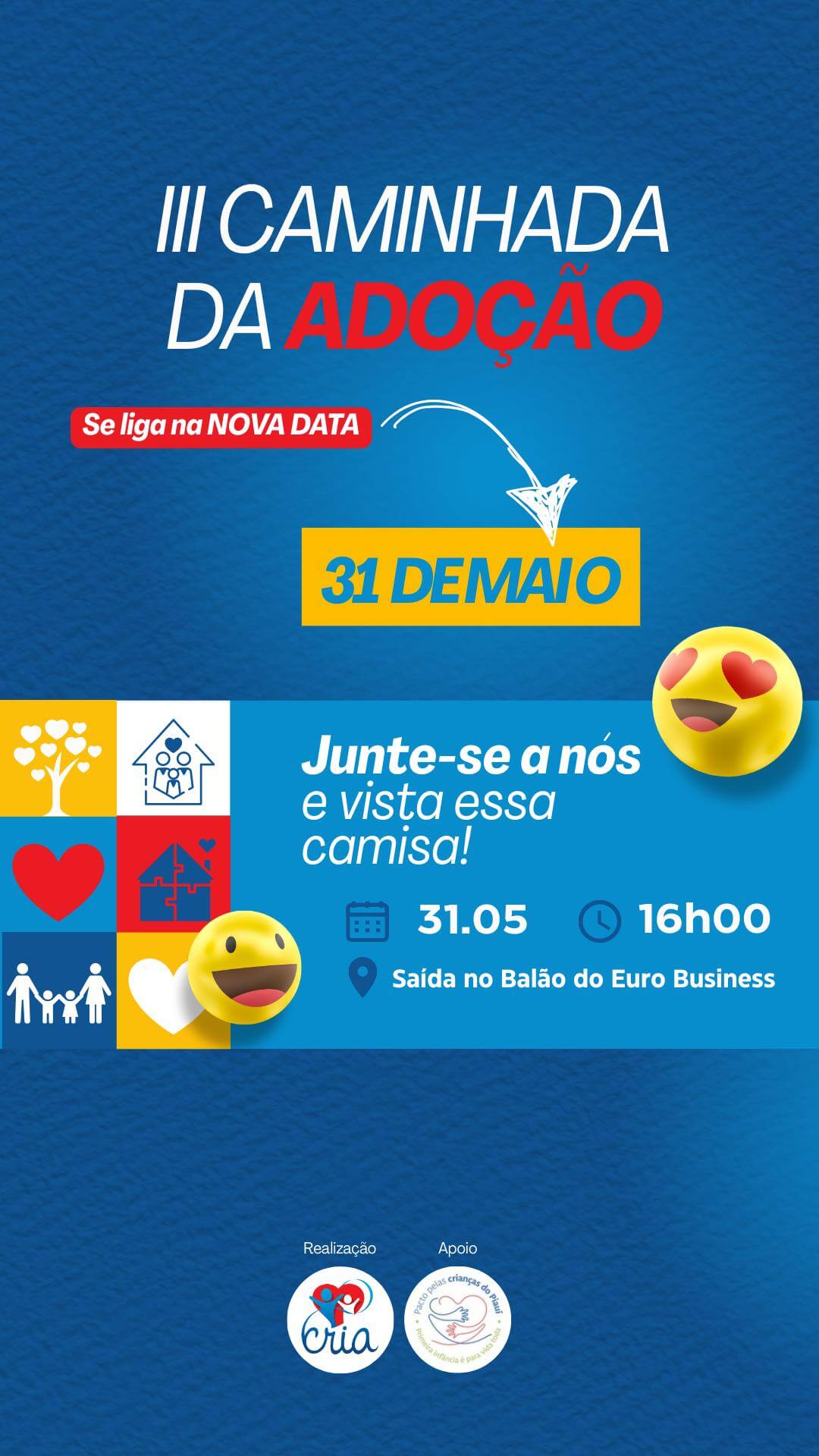 No próximo dia 31 de maio, às 16h, será realizada a III Caminhada da Adoção, promovida pelo CRIA – Centro de Reintegração da Infância e Adolescência –, com saída marcada do balão do Eurobusiness, em Teresina. A ação tem como objetivo sensibilizar a sociedade sobre a importância da adoção e do acolhimento de crianças e adolescentes em situação de abandono, além de reforçar a luta pelo direito de toda criança a ter uma família.
