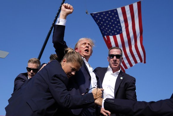 No último sábado (13), Trump foi retirado por seguranças do palanque onde fazia um comício, em Butler, no estado da Pensilvânia. Ele concorre novamente à presidência dos Estados Unidos em um disputa acirrada contra o atual mandatário, Joe Biden, que tenta reeleição. Após sons de tiros, o candidato republicano se abaixou e levantou com sangue na orelha e no rosto.