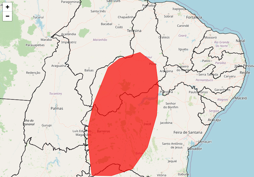 Entre as cidades sob maior risco estão Floriano, Oeiras, Bom Jesus, Corrente, São Raimundo Nonato, Picos e Uruçuí. Além do alerta vermelho, parte do território piauiense também está sob aviso laranja, que representa perigo, e alerta amarelo, indicando perigo potencial de chuvas com menor intensidade, mas ainda capazes de provocar ocorrências como queda de árvores, interrupções no fornecimento de energia e descargas elétricas.