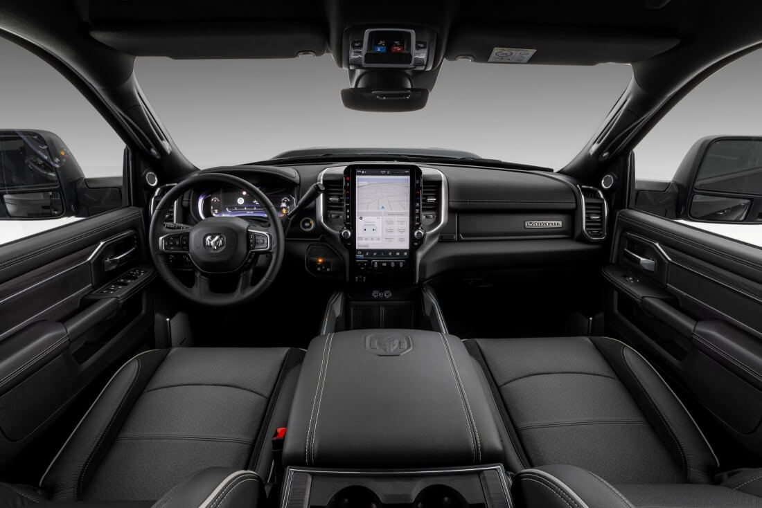A nova Ram 3500 2025 estreia com um visual renovado, que inclui novos faróis totalmente de LEDs, molduras do para-choque dianteiro, grade dianteira e lanternas também de LED redesenhadas. O interior, luxuoso e tecnológico, foi igualmente renovado, onde se destacam o quadro de instrumentos digital de 12,3” e a nova central multimídia com tela vertical de 14,5” – a maior do segmento. O modelo também terá novidades em conforto, tecnologia e segurança.
