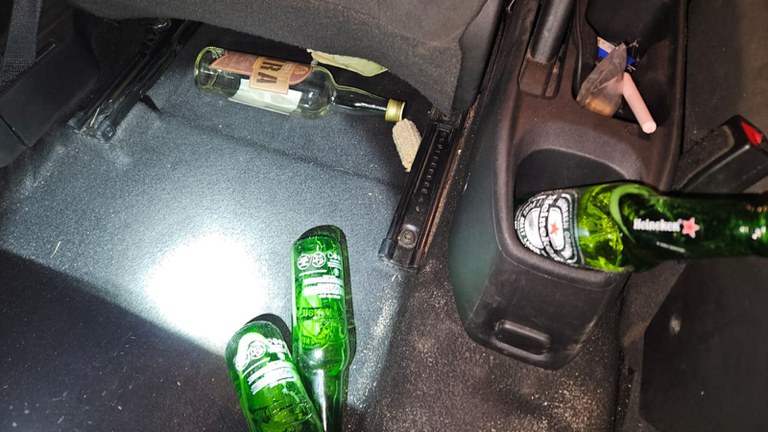 Durante a abordagem para fiscalização, tanto o motorista como os ocupantes apresentaram várias contradições durante a apresentação dos documentos. O motorista ainda recusou realizar o teste de alcoolemia, justificando que estaria ingerindo bebida alcoólica. Diante do cenário, os policiais aprofundaram a fiscalização, passando a realizar uma busca minuciosa no interior do veículo. Logo foram identificadas várias garrafas com cerveja no assoalho do carro. Escondidos em um compartimento por trás do porta-luvas e do painel do veículo, os policiais ainda encontraram dois revólveres e nove munições, além de R$ 7.154,00 em espécie.