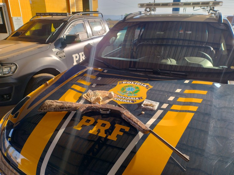 Durante a fiscalização, foram encontrados com dois passageiros que viajavam juntos uma espingarda, aparentemente calibre .22, e 23 gramas de um minério que aparenta ser ouro. Os itens estavam ocultos em uma mala no compartimento de bagagens do veículo.