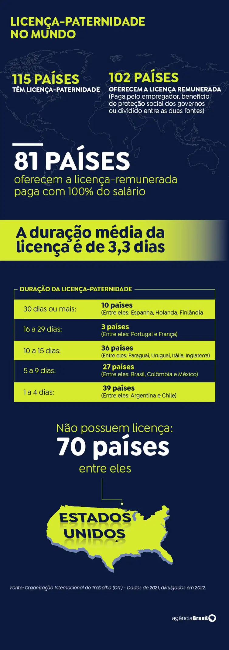 O Supremo Tribunal Federal (STF) decidiu que o Congresso Nacional deve aprovar lei de regulamentação da licença-paternidade na tarde de ontem, 15 de dezembro de 2023. Os parlamentares têm até 18 meses para aprovar nova ei sobre o benefício; caso contrário, STF irá equiparar o direito a licença de pais aos das mãe no Brasil, as últimas a ganhar 120 dias de afastamento remunerado.